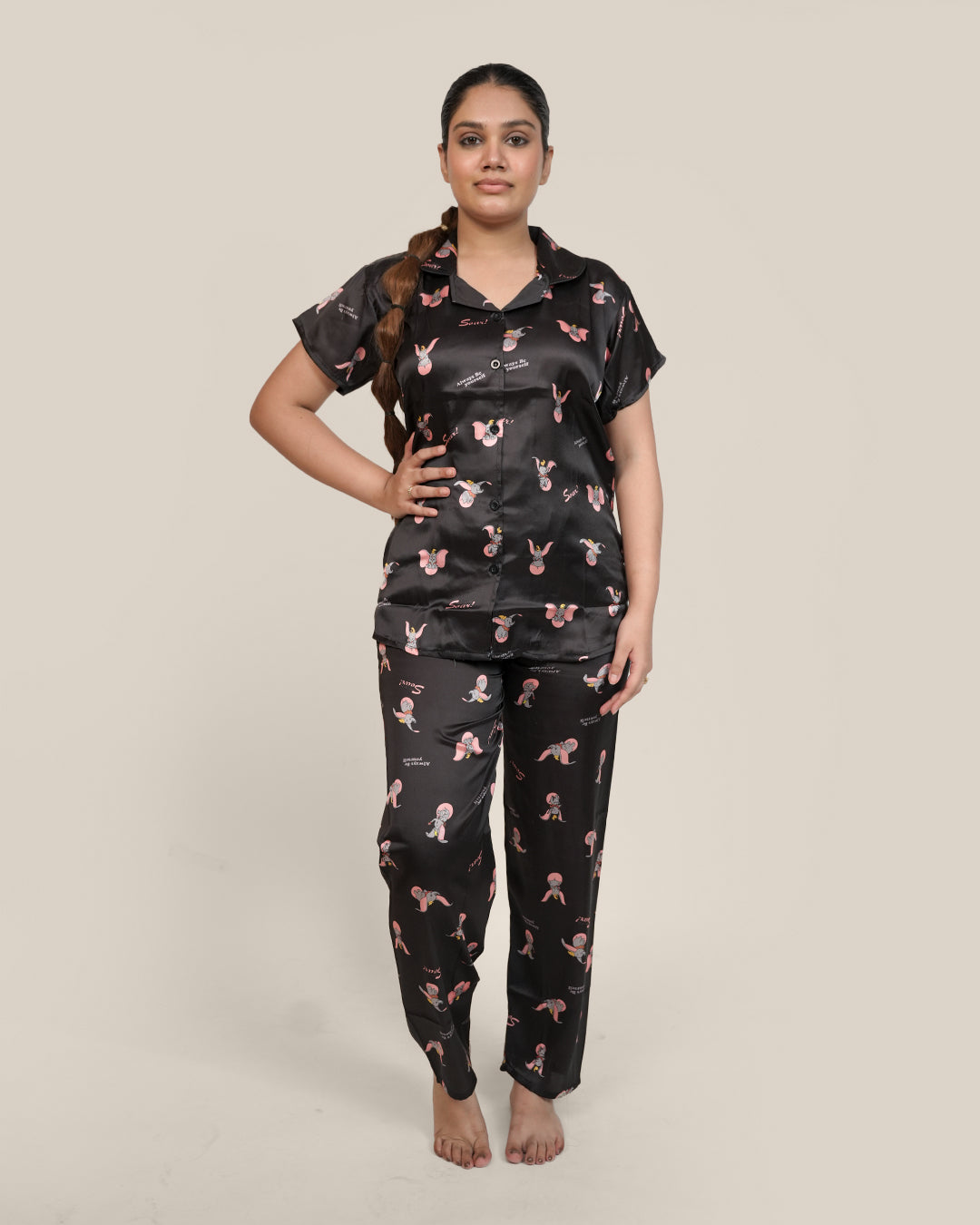 Our Japanese Satin Night Suits drape like liquid silk — soft, lustrous, and irresistibly smooth. With tailored collars, elegant details, and pockets that carry more than just comfort.