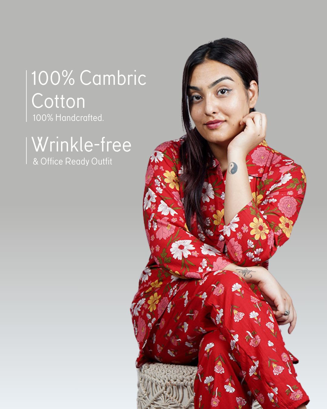 Laal Gul Cotton CO-ORD Set – Set of 2 | All-Day Everywhere