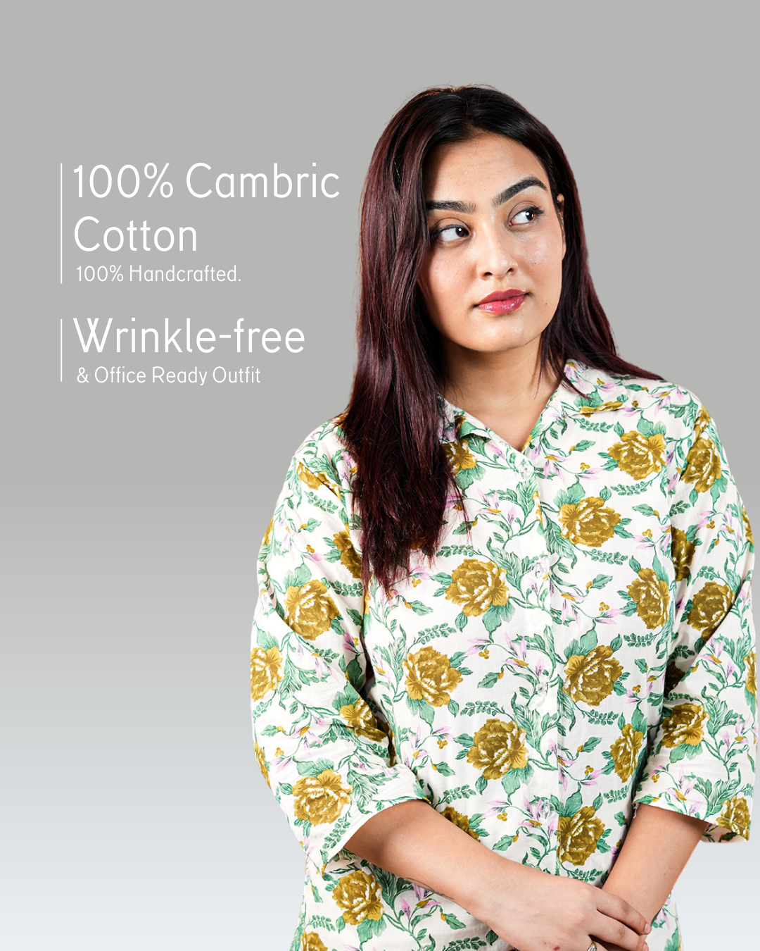 Meet Aranya, crafted from Cambric cotton that’s breathable, structured, and soft enough to live in all day.