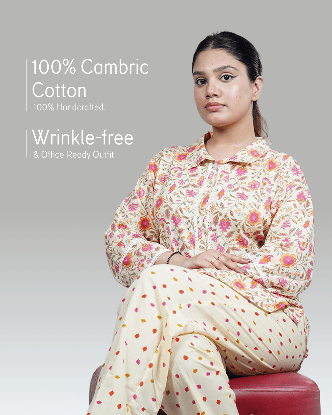 Meet Jaipur Bloom, crafted from Cambric cotton that’s breathable, structured, and soft enough to live in all day.