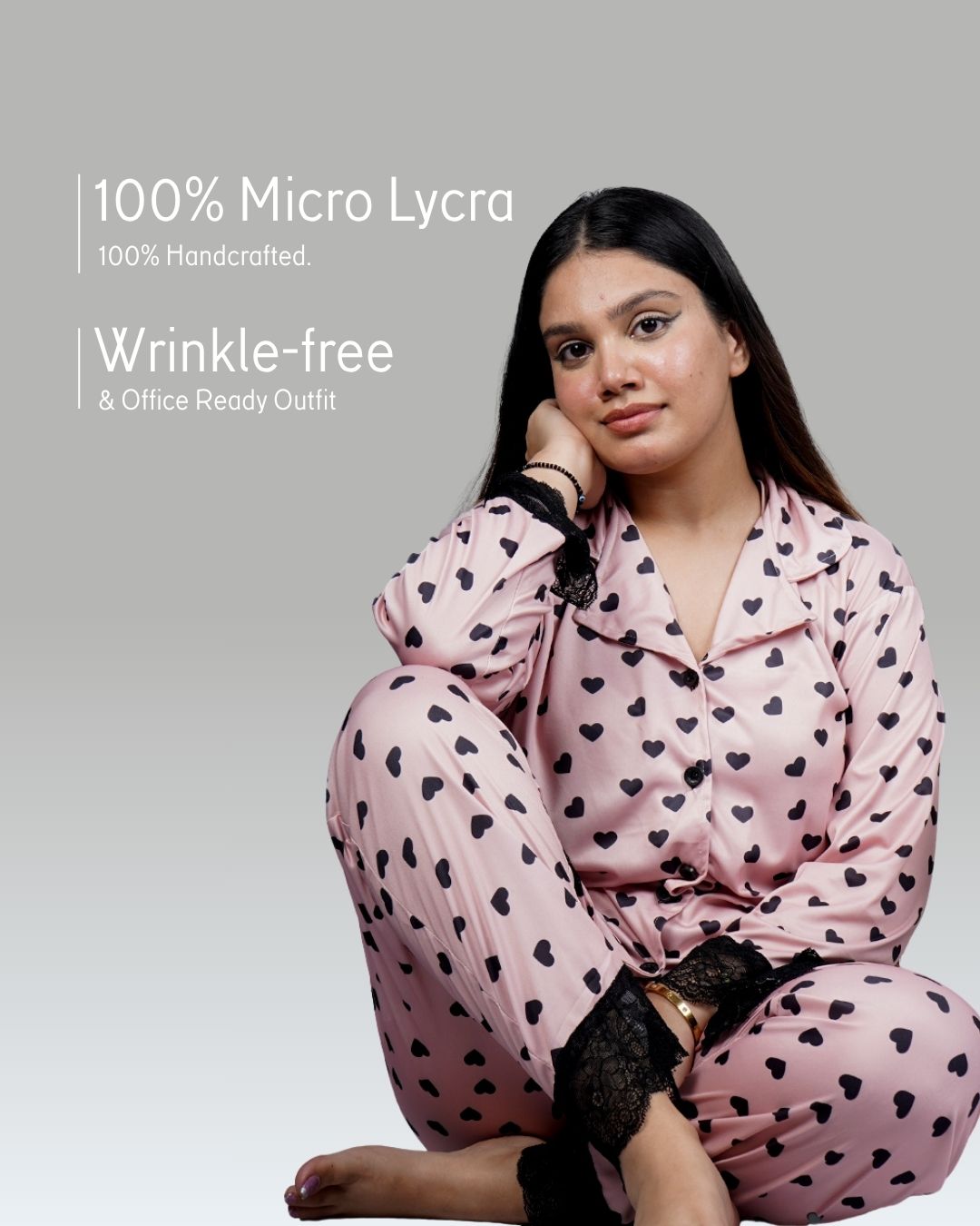 Our Lux Night Suits are crafted in silk-soft micro-lycra with elegant lace detailing, stitched collars, and real pockets that hold more than just comfort.