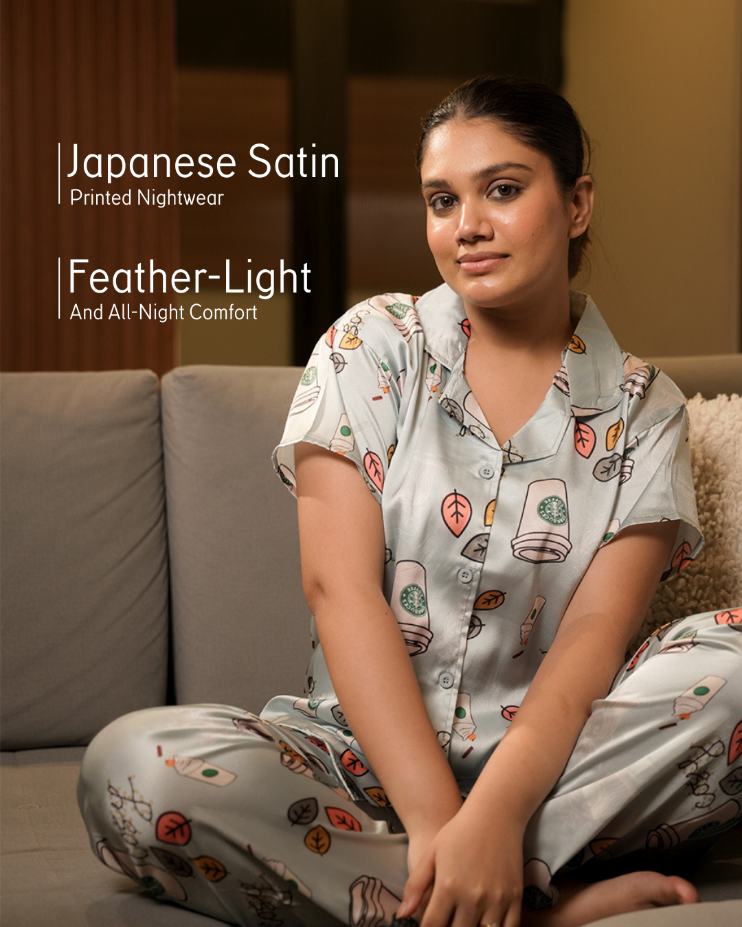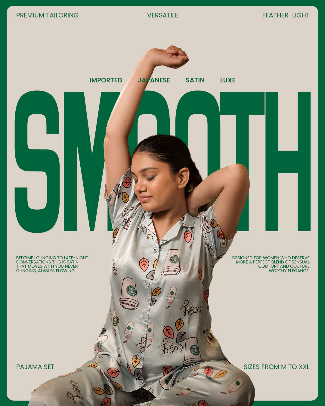 Our Japanese Satin Night Suits drape like liquid silk — soft, lustrous, and irresistibly smooth. With tailored collars, elegant details, and pockets that carry more than just comfort.