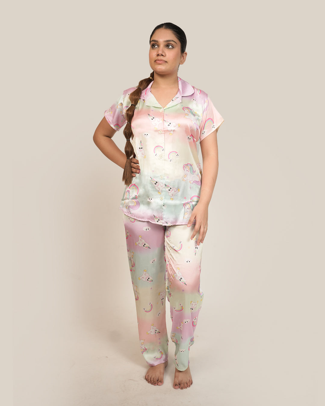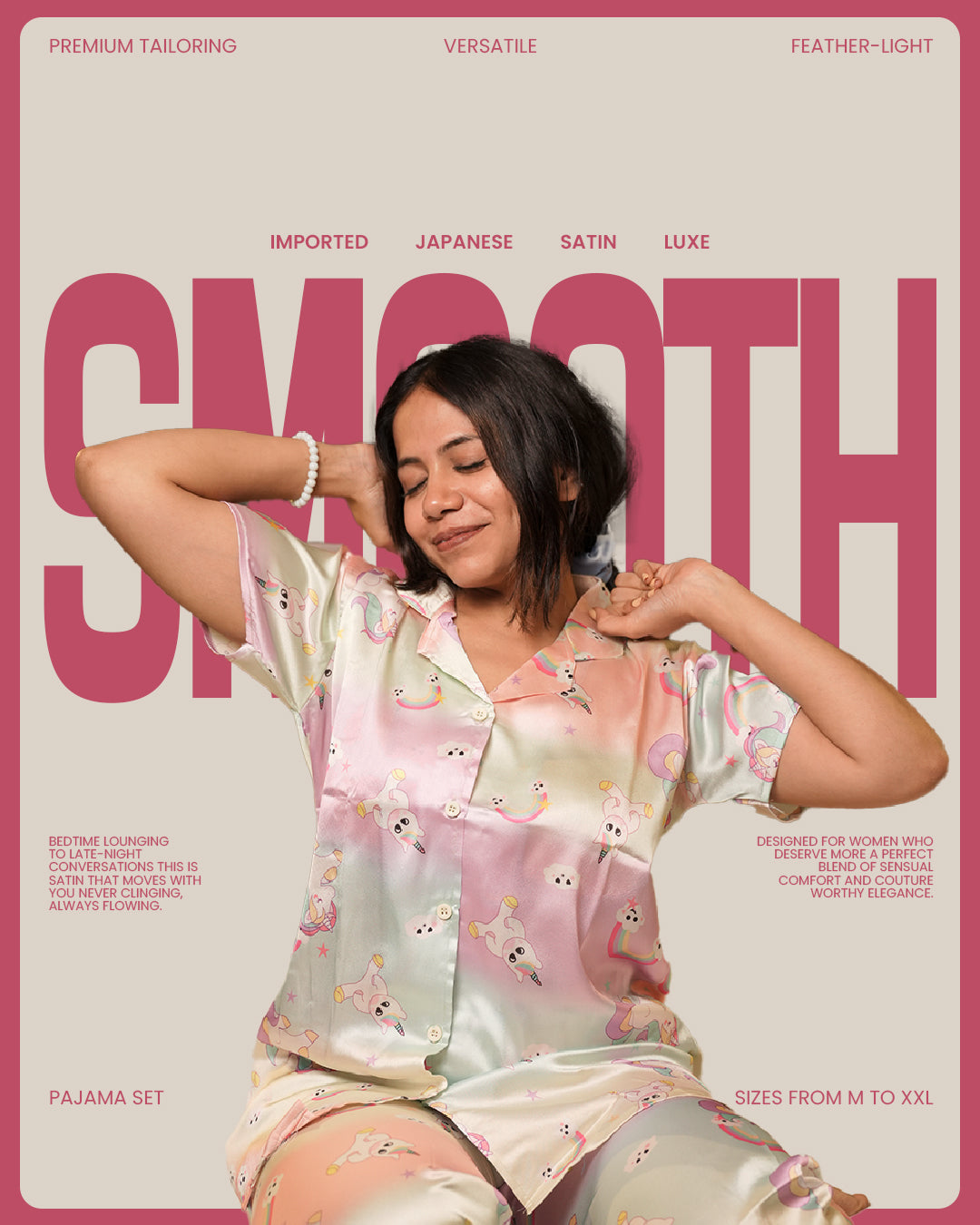 Our Japanese Satin Night Suits drape like liquid silk — soft, lustrous, and irresistibly smooth. With tailored collars, elegant details, and pockets that carry more than just comfort.